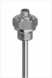The sensor consists of a non-replaceable measuring insert, a welded protection tube with process connection and a Hirschmann brand, M12x1 4-pole connector according to IEC 60947-5-2.