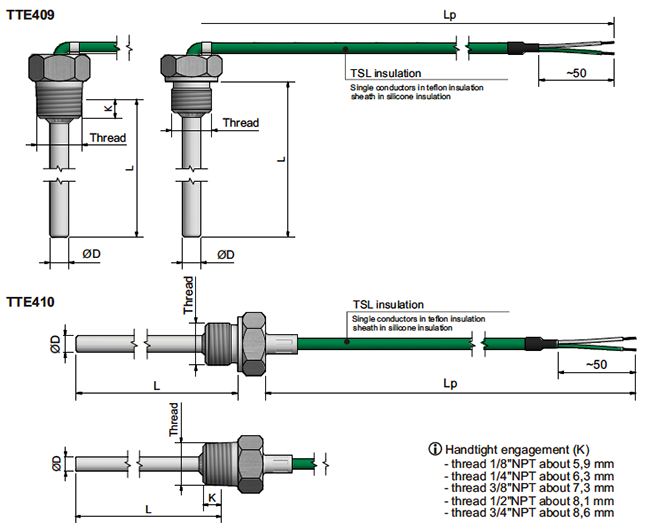 TTE409, TTE410, Cable thermocouple