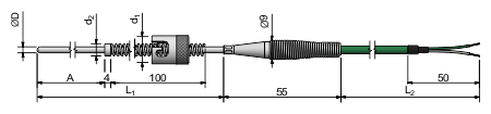 * Sheathed thermocouple TTP-313 with spring-loaded bayonet cap and thermocouple cable