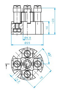 M5S-VS3L terminal block is made of steatite. Mainly used to connect resistance thermometer or thermocouple with external devices. Wire clamps are adapted to wire diameter<Ø1 mm. Those terminal blocks are installed in connection head M type. M5S-VS3L terminal blocks can be equipped with 2, 3 or 4 wire clamps.